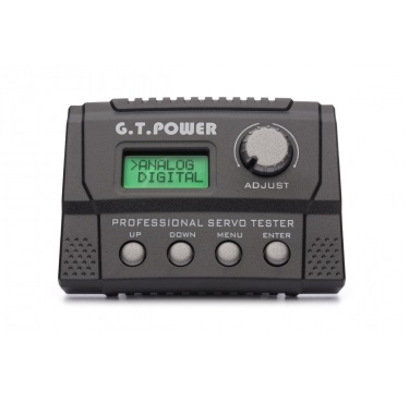 - Manuelle Einstellung der Servoposition mittels Drehknopf (Basisimpulsbreitenbereich elementar 1000-2000 µs / erweitert 500-2 500 µs). Mit dieser Funktion können Sie die Linearität der Servobewegung und allgemein seinen Betrieb testen. Sie können damit auch elektronische Drehzahlregler testen.